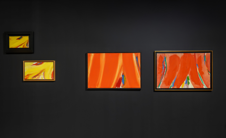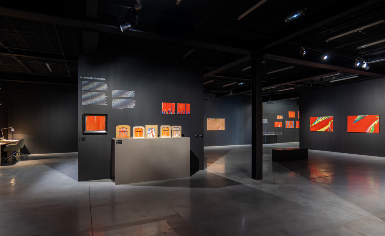 Parmi les 60 travaux préparatoires exposés, la moitié concerne la Comédie-Française pour laquelle l’artiste avait réalisé en tout une centaine d’esquisses (contre une vingtaine pour Shanghai par exemple). L’exposition met ainsi également en valeur l’identité de chacun des rideaux, exprimée par l’artiste à travers des recherches chromatiques très variées.