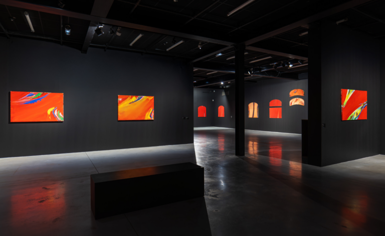 Le parcours de l’exposition est orienté selon quatre axes incarnant les quatre rideaux de scène réalisés par l’artiste : le théâtre de la Comédie-Française (Paris, 1987), l’opéra de Hong Kong (1989), le théâtre des Abbesses (Paris, 1996), l’opéra de Shanghai (1998).