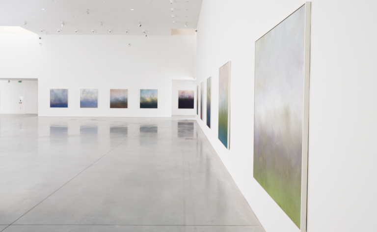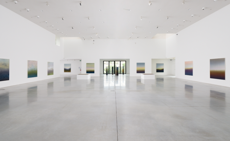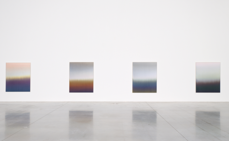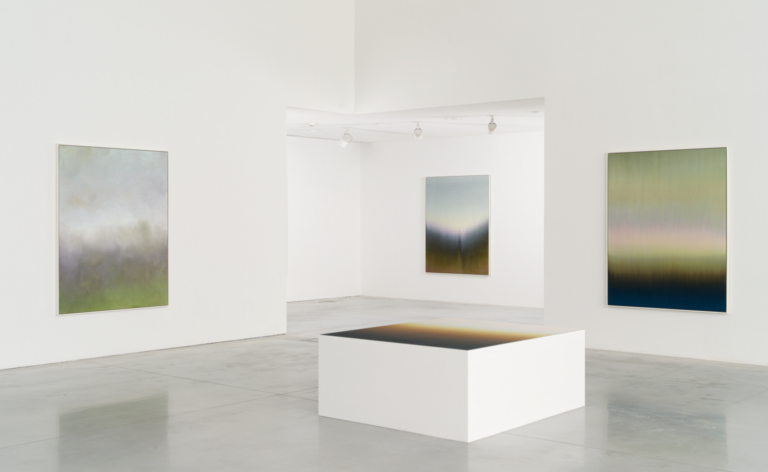 Pour l’un des espaces de la galerie blanche, l’artiste développe également, en collaboration avec Olumee, une nouvelle installation lumineuse qui permettra d’éprouver le temps de sa peinture, mais aussi de découvrir combien son aspect peut être changeant selon les différentes heures du jour.